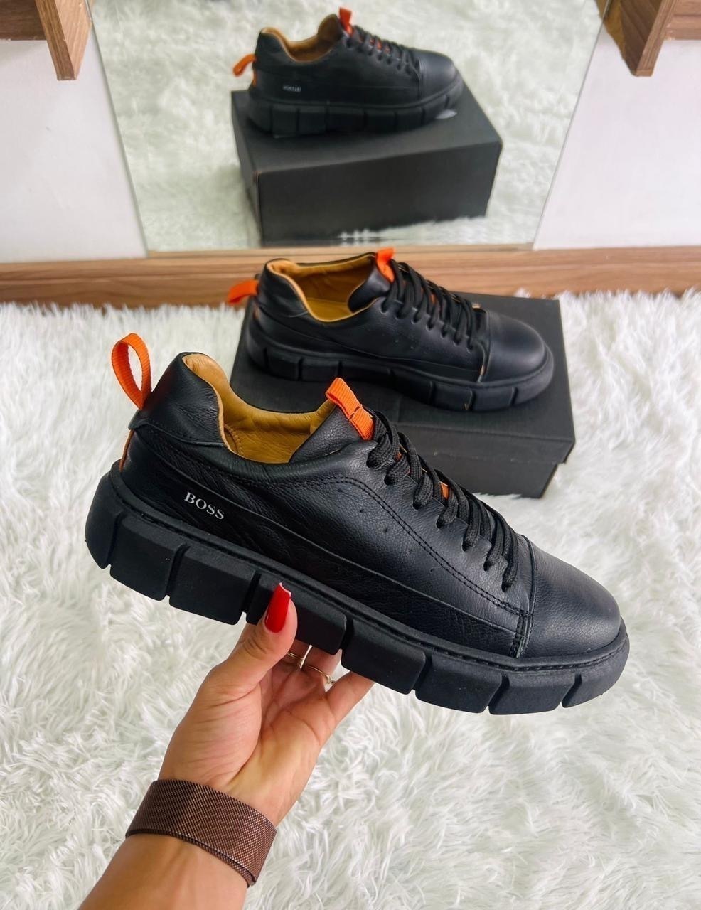 Tênis Masculino Sukiyo Low, Diesel. O tênis é produzido em couro . A peça possui bico arredondado, perfuros frontais, recortes frontais, laterais e posteriores em cores contrastantes, estampa posterior com nome da marca aplicado, palmilha macia, entressola com recorte posterior texturizado, solado emborrachado, acabamento pespontado e ajuste superior por cadarços em cor contrastante com aplicação de aviamento metalizado