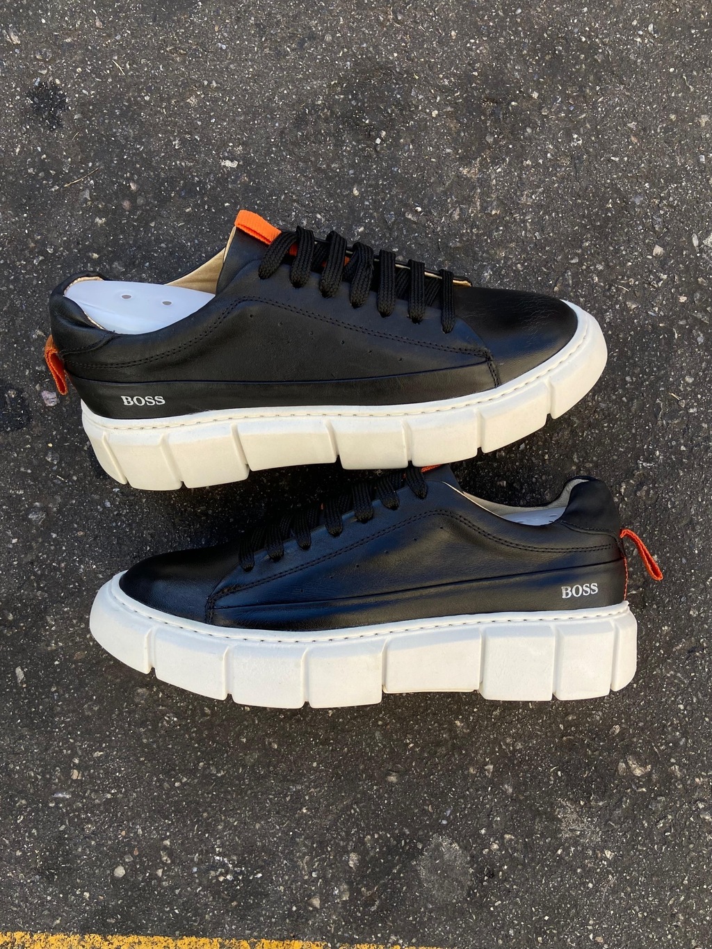 Tênis Masculino Sukiyo Low, Diesel. O tênis é produzido em couro . A peça possui bico arredondado, perfuros frontais, recortes frontais, laterais e posteriores em cores contrastantes, estampa posterior com nome da marca aplicado, palmilha macia, entressola com recorte posterior texturizado, solado emborrachado, acabamento pespontado e ajuste superior por cadarços em cor contrastante com aplicação de aviamento metalizado